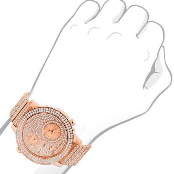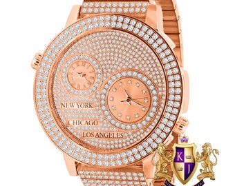 Herren Edelstahl 2 Time Zone Chronograph 18k Rosegold Ton Etsy De
